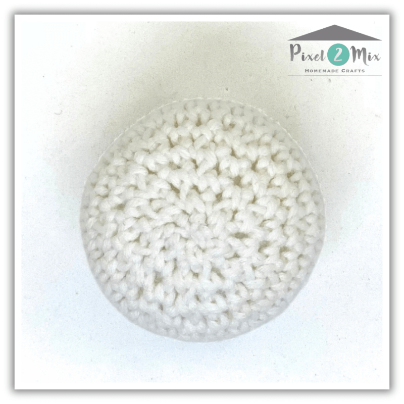 | - | Je rijgt 6 balletjes aan een draad tussen Toer 4. en 5. van elk balletje met 9 steken ertussen. Maak hem rond door voor een 2e keer in te steken in dezelfde steken, voor stevigheid. Trek de draad strak aan, zodat je deze niet meer ziet. |