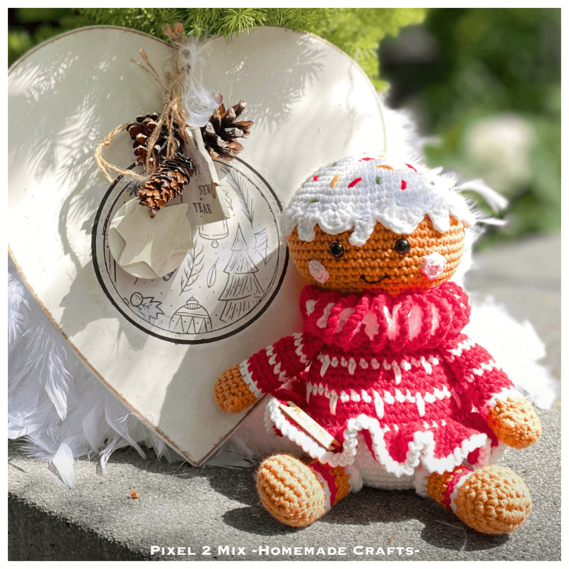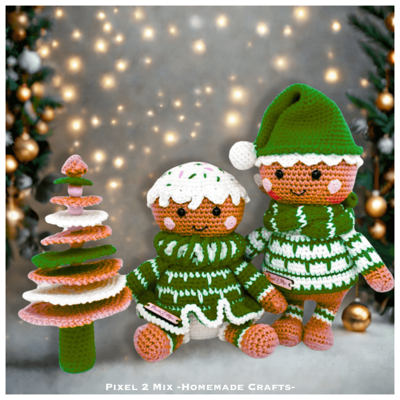 Ik (Marja van Pixel 2 Mix) wilde dit gevoel vangen in een Peperkoek Duo, zodat jij Gigi en Gus tot leven kunt brengen met haaknaald en garen. Ze staan symbool voor de vreugde van samen creëren en de magie van handgemaakte schatten.