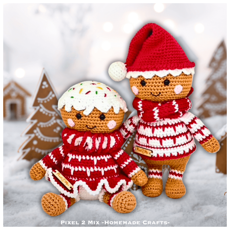 Maak kennis met Gigi & Gus, het schattige Peperkoek Duo dat je hart zeker zal veroveren! Dit 'heerlijke' Duo was onderdeel van een speciale Crochet Along (CAL) 2024, ontworpen door Pixel 2 Mix (Marja Hermes) voor Gek op Haken.