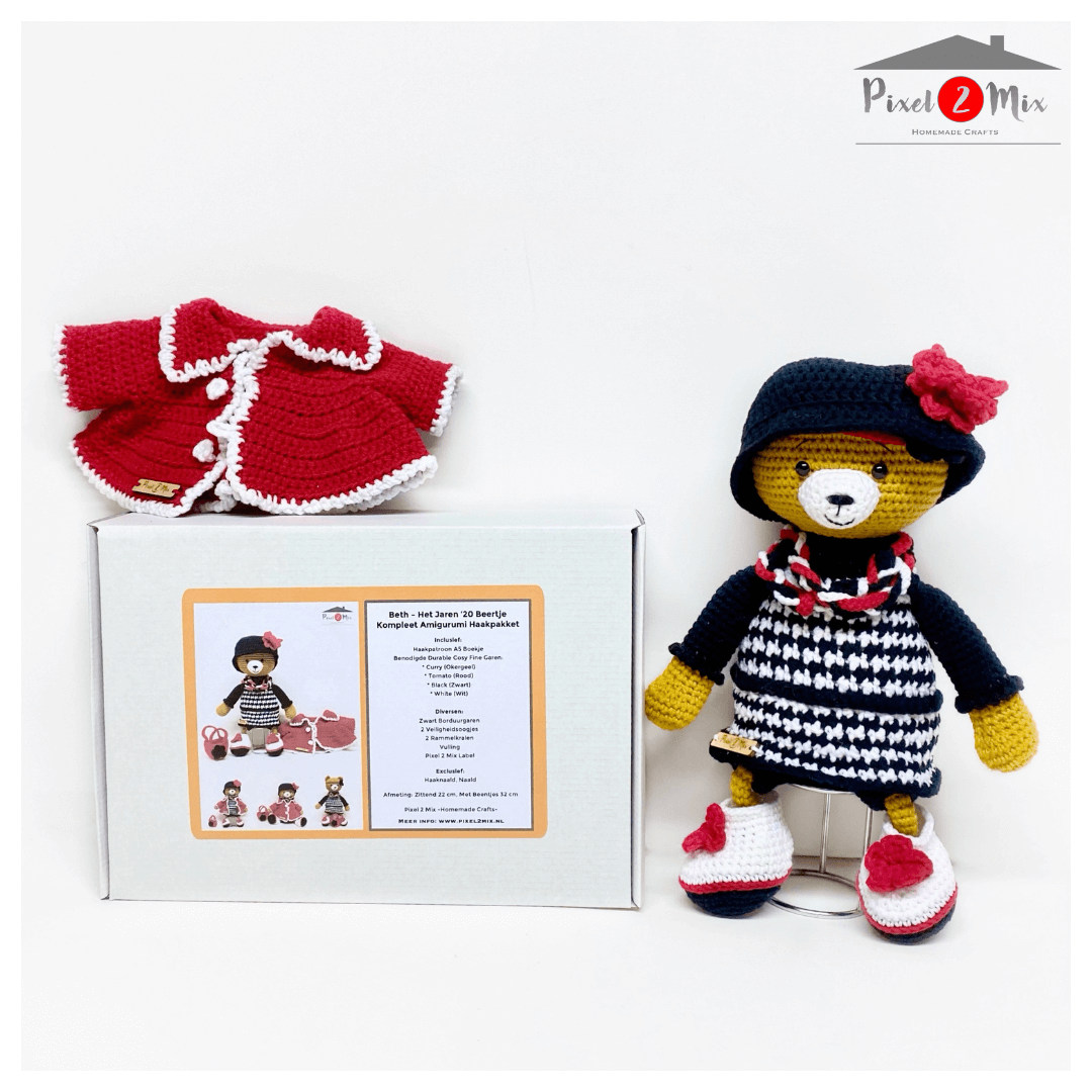 Stap binnen in de betoverende wereld van de jaren 1920 met ons Beth' haakpakket. Hiermee creëer je jouw eigen Beth - Het Gatsby Beertje, dat de sfeer vult met glamour en charme. Dit exclusieve haakpakket is jouw sleutel tot een uniek project, of je nu een ervaren haakster bent of net begint met haken.