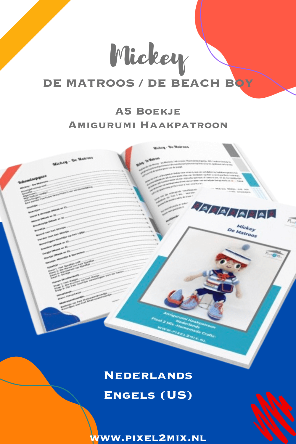 Stap in de vrolijke wereld van Mickey - De Matroos / De Beach Boy met dit bijzondere geprinte Amigurumi haakpatroon in een A5 boekje. Laat je inspireren door spelende kinderen op het strand en haak je eigen ondeugende Matroos of vrolijke Beach Boy.