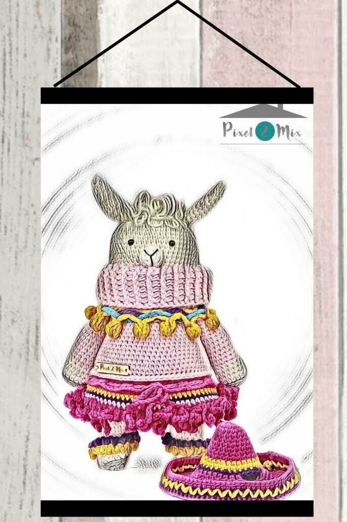 Combineer deze poster van Llara met een gehaakte knuffel alpaca en ansichtkaarten of bestel ook de andere 2 posters van Llara en je kan een 3-Luik creëren.