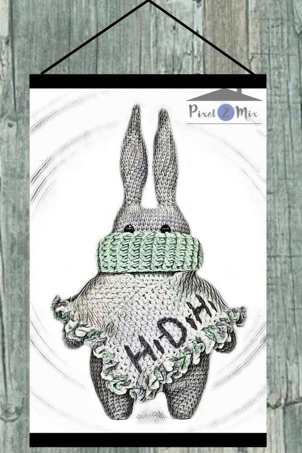 Combineer deze poster van Renzo met een gehaakt knuffel konijntje en ansichtkaarten of bestel ook de andere 2 posters van Renzo en je kan een 3-Luik creëren.