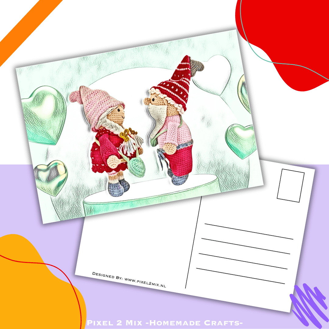 Deze schattige ansichtkaart is geïnspireerd op Lex & Liv - De LOVE Kaboutertjes, een verliefd duo dat harten verovert met hun speelse en liefdevolle uitstraling. Perfect om iemand te verrassen met een warme en romantische boodschap!