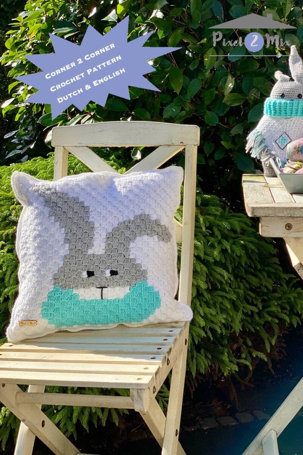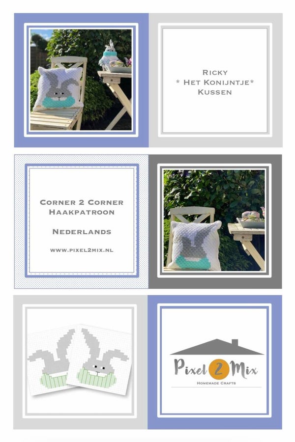 Ricky - Het Konijntje - Kussen - A5 Boekje / 2x A4 Charts - C2C Haakpatroon