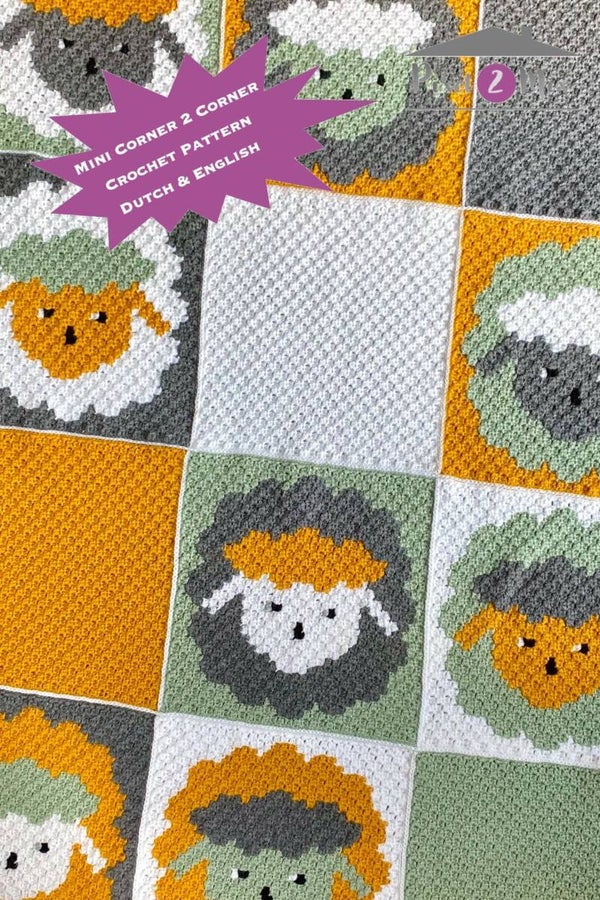 Ik ben een papieren Mini Corner to Corner / Mini Corner 2 Corner (Mini C2C) haakpatroon in het Nederlands of in het Engels. Ik besta uit 12 vierkanten in dezelfde kleurstellingen, maar dan net eventjes anders. Je kan mij hiermee ook zelf maken, zodat je ook een deken hebt, waar je onder kan kruipen.