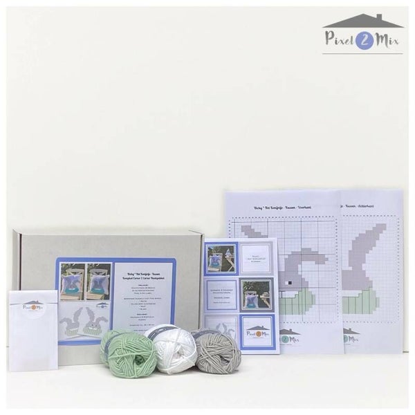 In het haakpakket tref je naast de grafische hokjestekening ook een geschreven uitleg aan, zodat je of hokjes kan tellen of per diagonaal ziet in welke kleur je een blokje moet haken bij de geschreven uitleg. Het patroon gaat in diagonalen van rechtsonder naar linksboven.