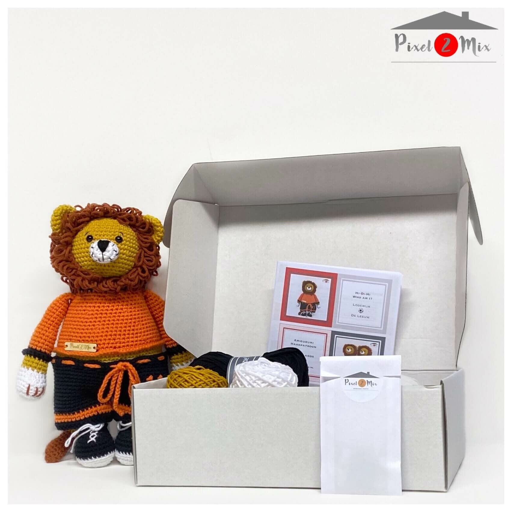 In het haakpakket zitten alle benodigde materialen om Lodewijk zelf te maken: Durable Cosy Fine garens, veiligheidsoogjes, fiberfill en het haakpatroon met tekeningen, foto's en YouTube links. Het enige dat ontbreekt zijn de haaknaald 4.0 en een stopnaald.