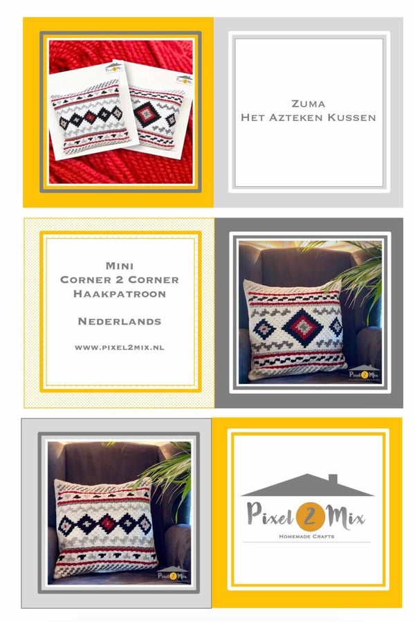 Zuma - Het Azteken Kussen - A5 Boekje / 2x A4 Charts - C2C Haakpatroon