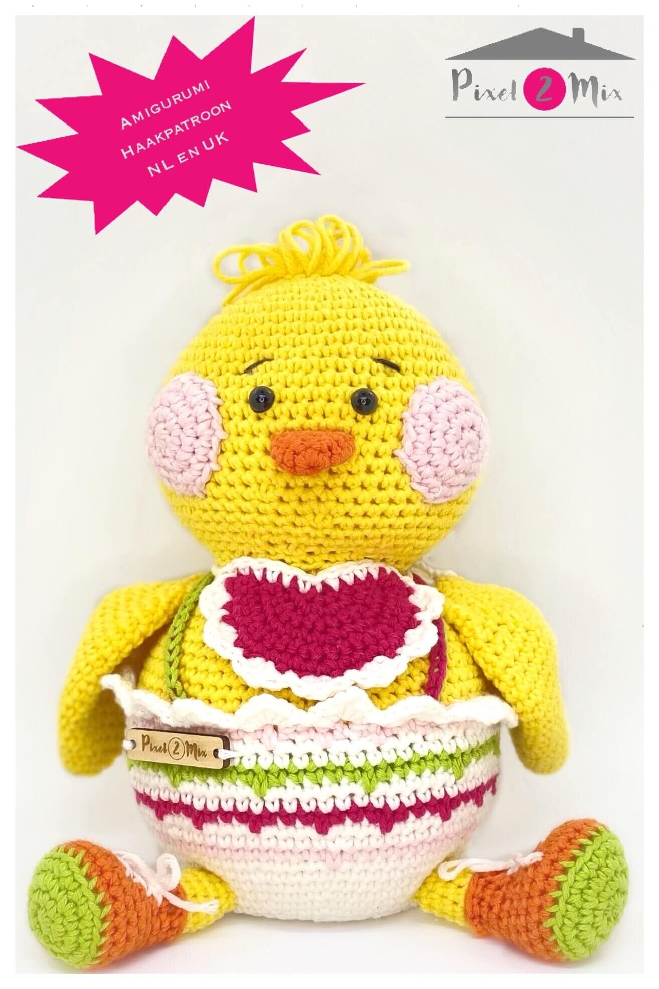 Ik ben een PDF Amigurumi haakpatroon in het Nederlands of Engels. Je kan Coco met dit patroon zelf maken, zodat je ook met Coco kan knuffelen, spelen én/of ook als decoratie kan neerzetten. Leuk ook om Coco bijvoorbeeld te haken voor Pasen!