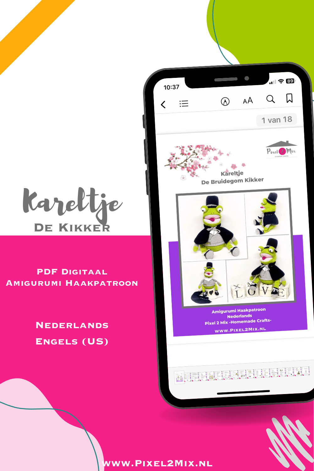 Ik ben een PDF Digitaal Amigurumi haakpatroon in het Nederlands of Engels. Je kan Kareltje * De Bruidegom Kikker met dit patroon zelf maken, zodat je ook met Kareltje kan knuffelen en spelen, maar ook als decoratie kan neerzetten.