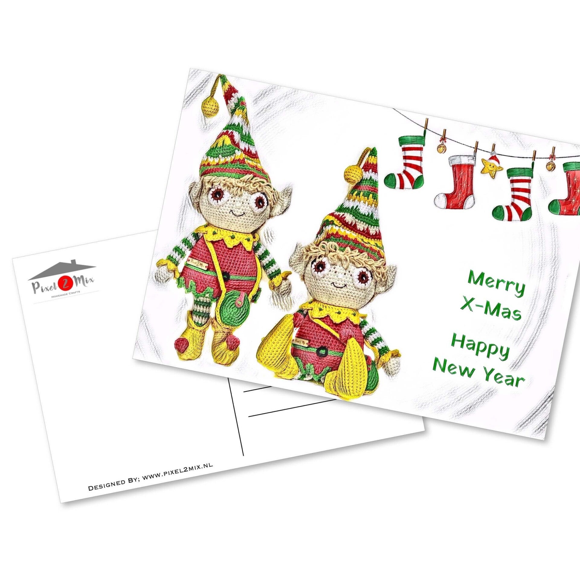 Een leuk en lief kerstkaartje van Elbert - De Zittende en Staande Kerstelf. Wil jij een keertje een originele kerstkaart versturen? Dan heb je die nu gevonden!